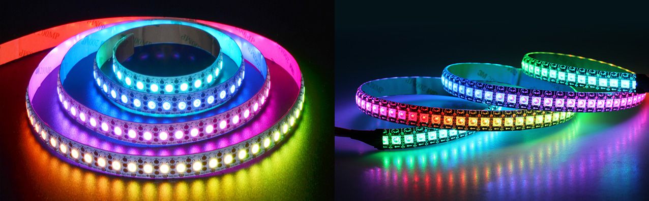 幻彩燈帶是指在RGB燈帶基礎之上,增加一顆控制IC,使得每一顆燈珠都能獨立控制,實現各種各樣的效果,如跑馬流水漸變等等。幻彩燈帶擁有顏色和模式變換。